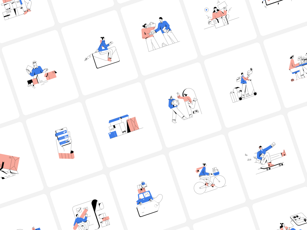 Delivery Illustration pack, 120 Illustrations