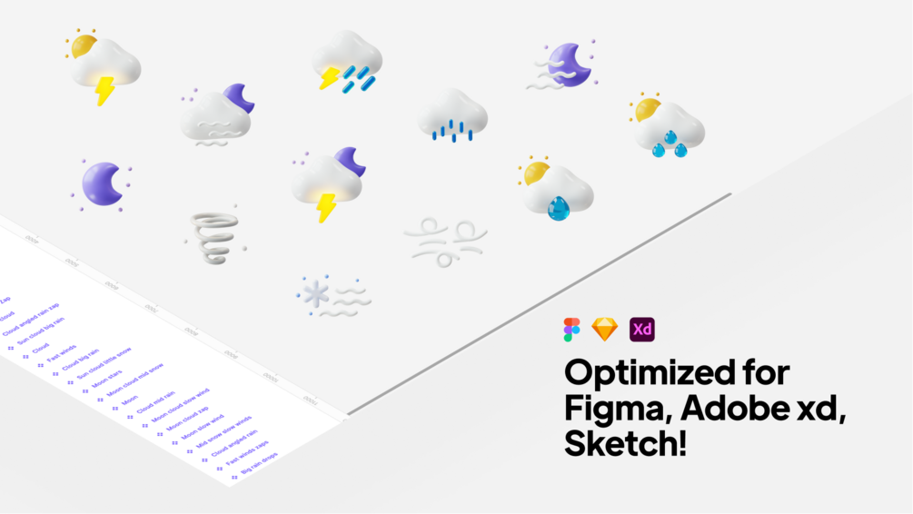 Weatherly is Piqo's first 3d pack that relates to weather and it's available on 3 platforms (Blender, Figma, Sketch, Adobe XD)